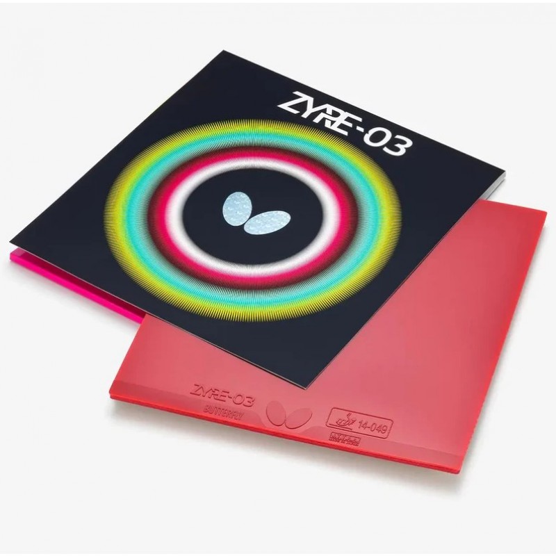 The Zyre is composed of “Ricosheet”, a top sheet with dense, medium tacky, low pimples, and an extremely thick sponge. In addition to this distinctive structure, this rubber has a top sheet compound with strengthened resistance to abrasion, an excellent feeling of holding the ball, and a harder Spring Sponge X. Adopting the pimple which draws out power with spin, Zyre 03 enables shots that penetrate deep into the opponent’s side of the table with a dramatic arced trajectory. This is recommended for players who wish to dominate rallies with powerful, spin-heavy shots.